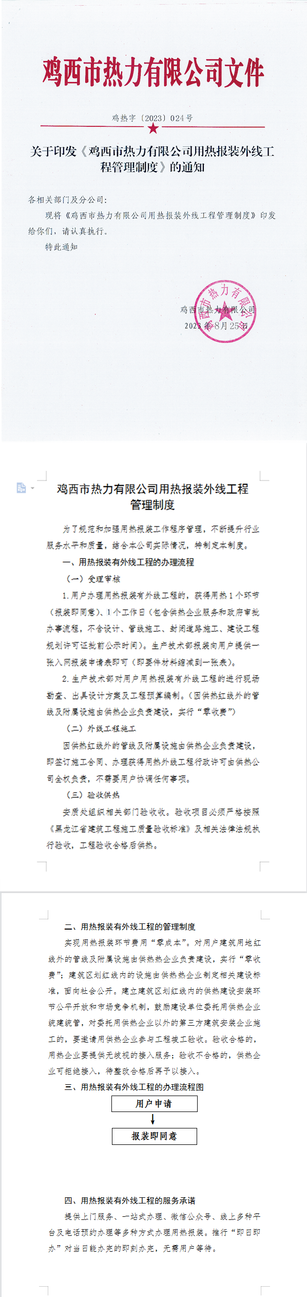 關(guān)于印發(fā)《雞西市熱力有限公司用熱報裝外線工程管理制度》的通知